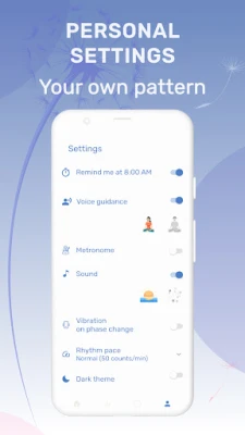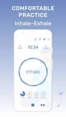 Šioje programėlėje rasite kruopščiai sukurtą mokymų sistemą, padėsiančią įvaldyti raminantį kvėpavimą. Jame integruoti Yantra jogos, Tibeto kvėpavimo jogos, ritmai, kurie yra perduodami iš kartos į kartą ir išsaugoti nepakitę iki mūsų dienų. Be asmeninių treniruočių parametrų nustatymų ir išsamios jūsų veiklos statistikos, programėlėje taip pat gausu įdomios informacijos apie kvėpavimą ir jo įtaką žmogaus organizmui. Treniruotės pagrindas – keturios kvėpavimo fazės: įkvėpimas, sulaikymas įkvėpus, iškvėpimas ir sulaikymas iškvėpus (tuščiais plaučiais). Reguliariai sekant šiuos tikslius ritmus, jūsų kvėpavimas taps tolygus, protas nurims, o emocijos taps harmoningos.