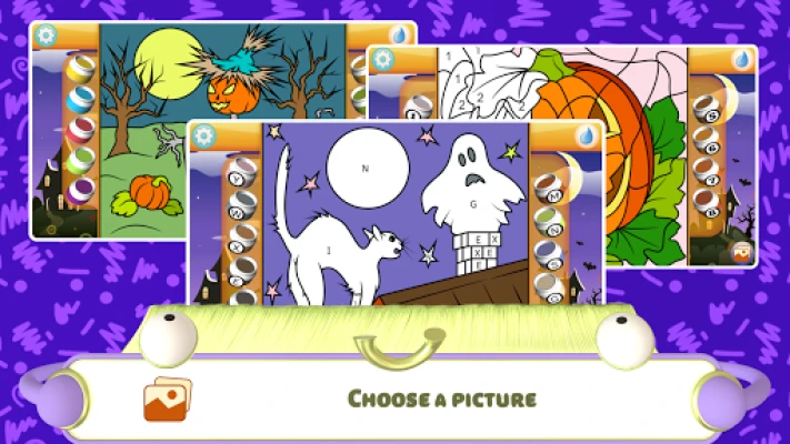 Pasinerkite į nepaprastą Helovino nuotykių pasaulį su Helovino Spalvinimo, kur fantazija atgyja ryškiausiomis spalvomis! Ši unikali programėlė puikiai tinka kiekvienam – nuo smalsių mažylių iki suaugusiųjų, ieškančių kūrybiško atsipalaidavimo. Čia rasite daugybę žavių personažų ir šiurpių scenų: šelmiškus moliūgus, paslaptingas raganas, draugiškus vaiduoklius, juodąsias kates ir daugybę kitų Helovino simbolių. Kiekvienas puslapis siūlo unikalų iššūkį, pradedant paprastais kontūrais patiems mažiausiems ir baigiant sudėtingomis kompozicijomis, kurios patiks ir vyresniems.