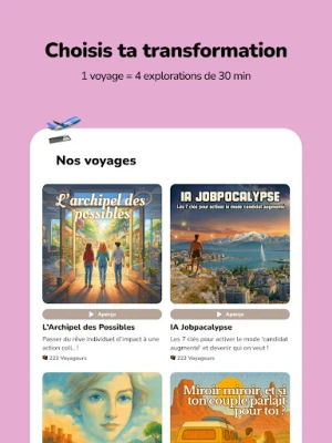 „La Pause - Voyages intérieurs" padeda keliauti po savo vidinį pasaulį per interaktyvias istorijas. Geriau įsiklausykite į save, supraskite savo pasirinkimus ir ramiai judėkite pirmyn. Atraskite audio keliones gyvybiškai svarbiomis temomis, klausinėkite ir augkite. Tai introspektyvūs nuotykių ieškojimai be spaudimo.
