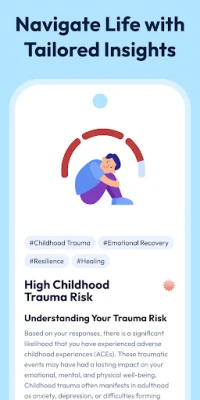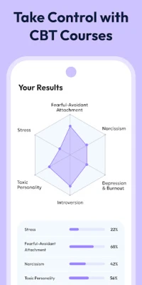 „Mental Health: Serene" padeda stiprinti psichikos gerovę ir emocinę sveikatą. Atraskite individualizuotus KET pagrįstus kursus ir savęs pažinimo testus, skirtus stresui, traumoms ir nuotaikos sutrikimams valdyti. Supraskite save geriau ir pasiekite vidinę ramybę.