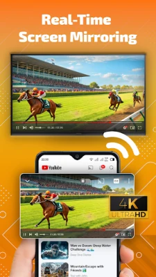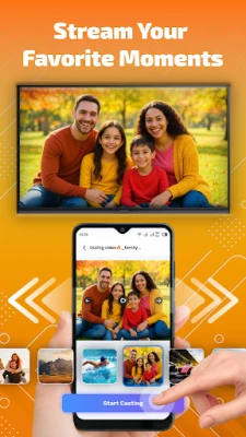 "Fast Cast" funkcija suteikia galimybę mėgautis realaus laiko srautu iš telefono į bet kurį išmanųjį televizorių ar belaidį ekraną, tiesiog prijungus abu įrenginius prie to paties "Wi-Fi" tinklo. Jokios papildomos įrangos ar sudėtingų konfigūracijų – tiesiog atverkite "Cast to TV" ir bakstelėkite, kad pradėtumėte transliaciją. Ši programa yra suderinama su įvairiais išmaniaisiais televizoriais, "Chromecast" įrenginiais ir "Miracast" palaikančiais ekranais, paversdama jūsų telefoną galingu medijos transliacijos centru. Atraskite naują būdą bendrauti ir pramogauti, išnaudodami didelio ekrano privalumus be jokių apribojimų.